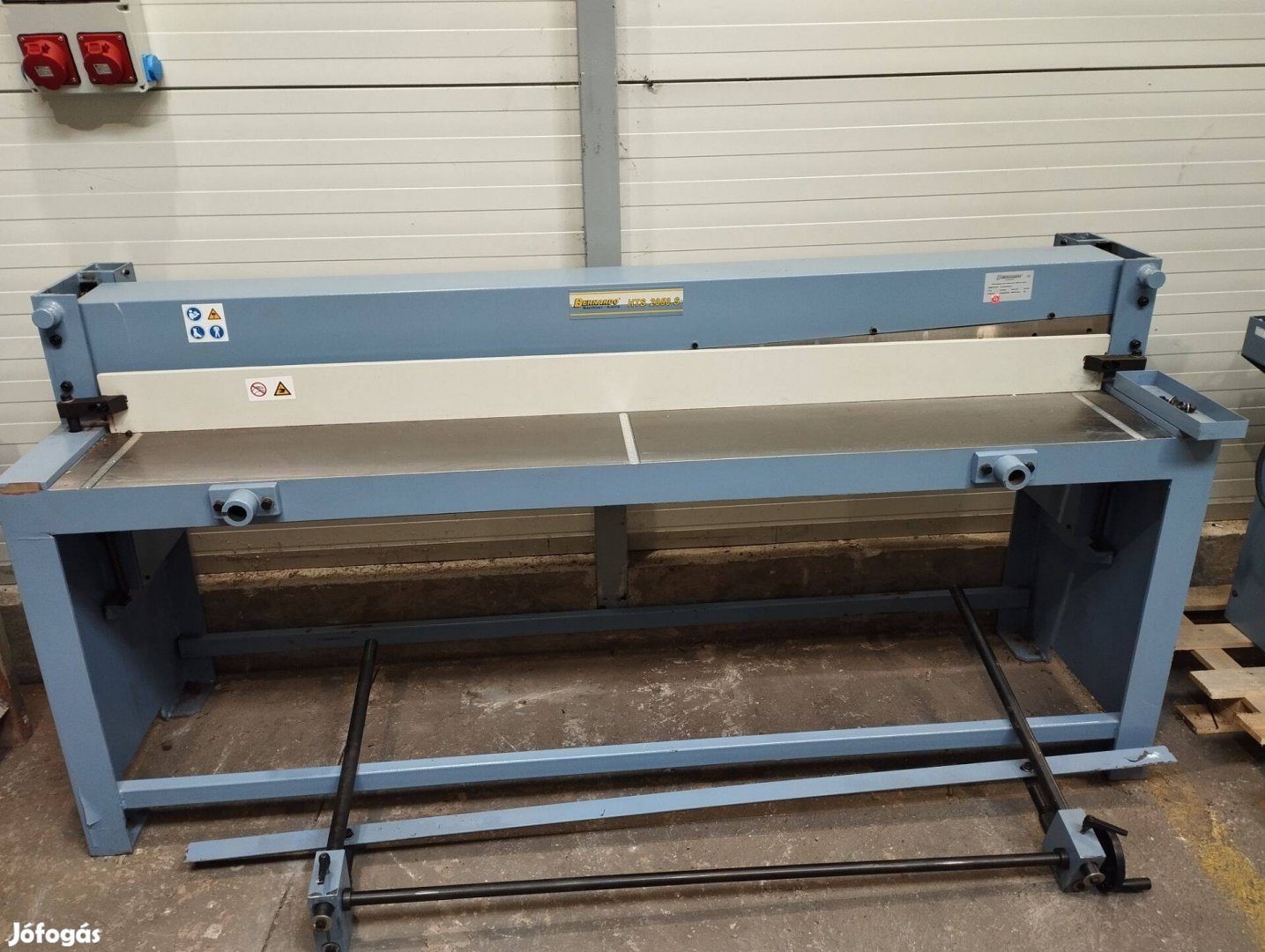 Táblaolló Bernardo 2050 06-1680. Vágási hossz: 2045mm. Max lemezvastagság: 1,25mm. Asztalmagasság: 800mm. Súly: kb 540kg. 2022-ben vásároltuk, de még nem volt összeszerelve. Az ár nettó ár.