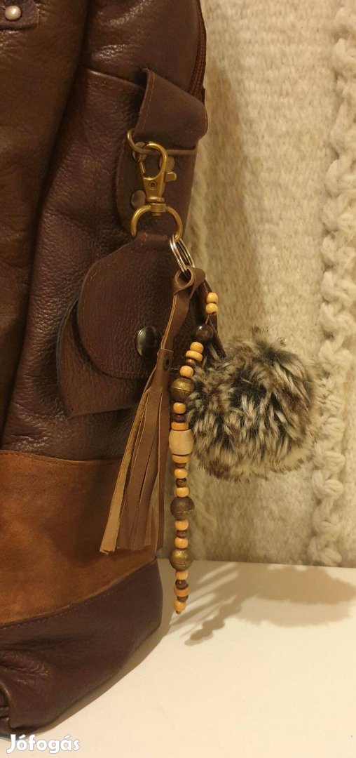 Táskadísz, aprótartó pénztárca, kulcstartó. Puha, barna valódi bőr. Új