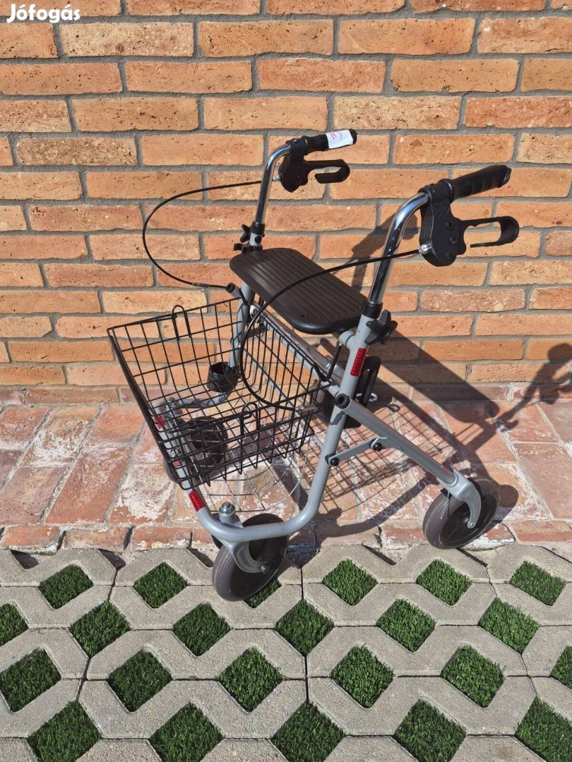 Kerekei nem csak fékezhetőek, hanem fixálhatóak is, így ülőkeként, megpihenésre is alkalmas az eszköz! A tolókar magassága állítható!