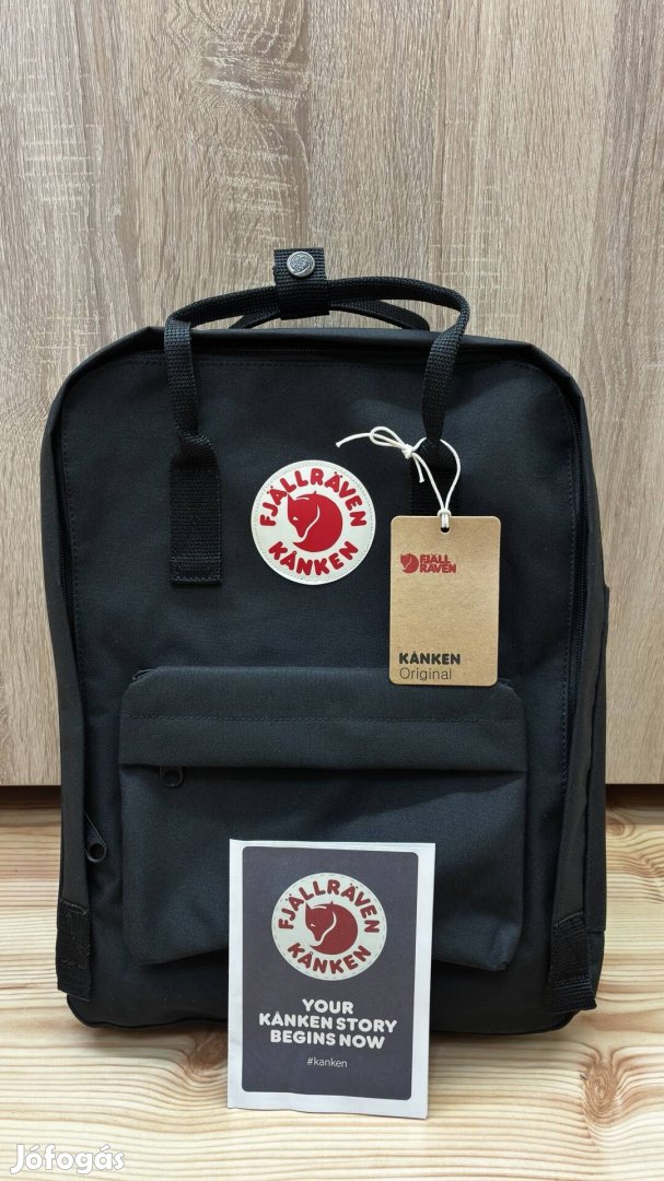 Eladó egy teljesen új, címkékkel ellátott fekete színű hátizsák fekete pántokkal.