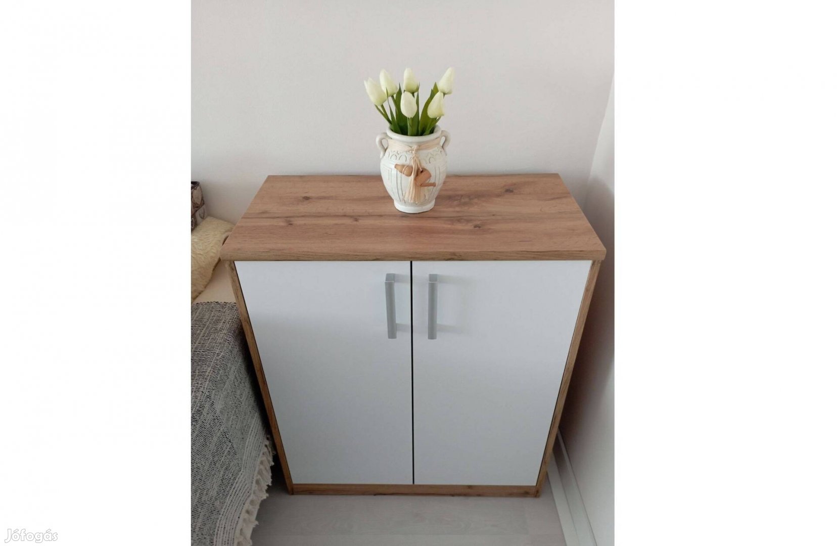 Újszerű wotan tölgy - fehér 2 ajtós komód polcos kis szekrény - Szeged