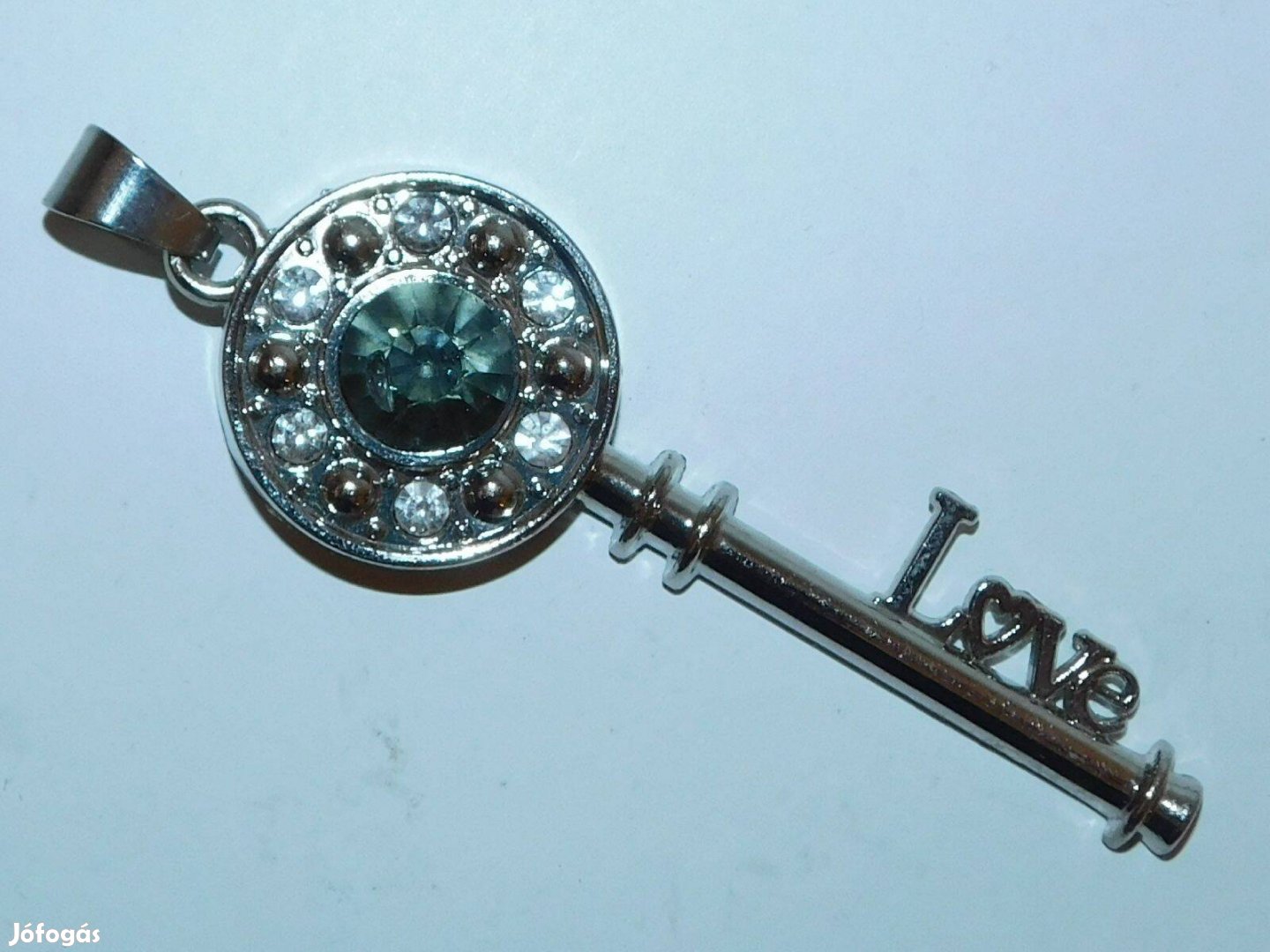 Eladó a képen látható hibátlan, 8 cm hosszú, kulcs alakú, kövekkel díszített , "Love" feliratú medál.