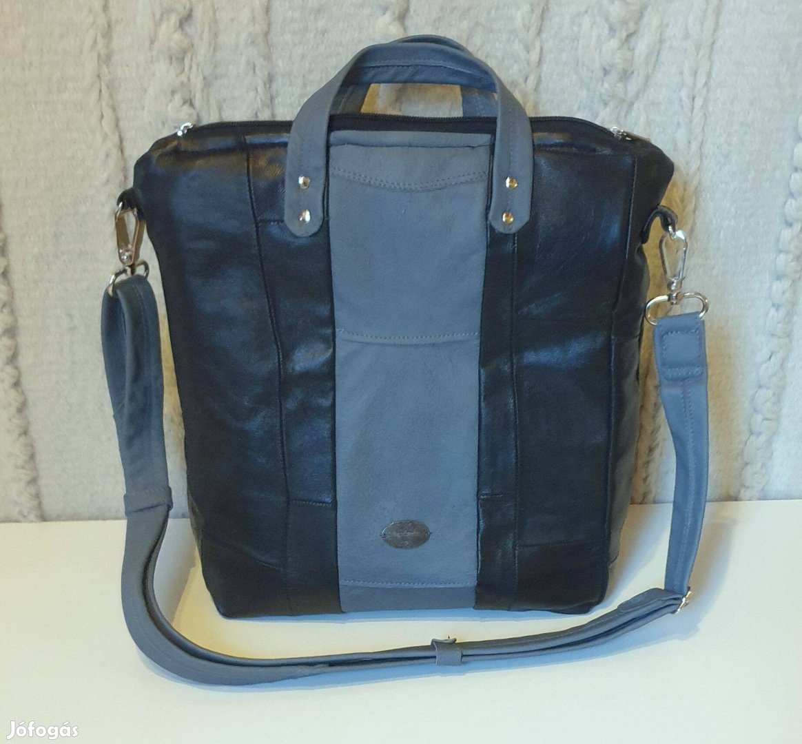 Válltáska, kézitáska, valódi bőr. Fekete és páncélkék. Új, egyedi