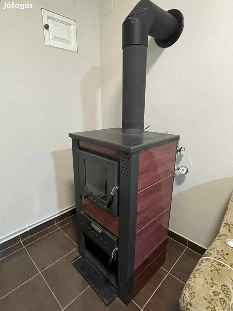 Piros csempe,szabadonálló, 30 kW-os vízteres kandalló, újszerű állapotban. Fatüzelésű, erős zsanérokkal, jó ajtótömítésekkel. Csak víztérre kötve üzemeltethető.