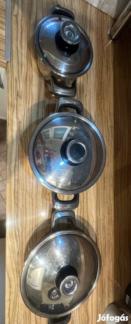 Kitűnő állapotban lévő Zepter edény készlet eladó. Az eredeti számla rendelkezésre áll, ami örök gararnciát biztosít.