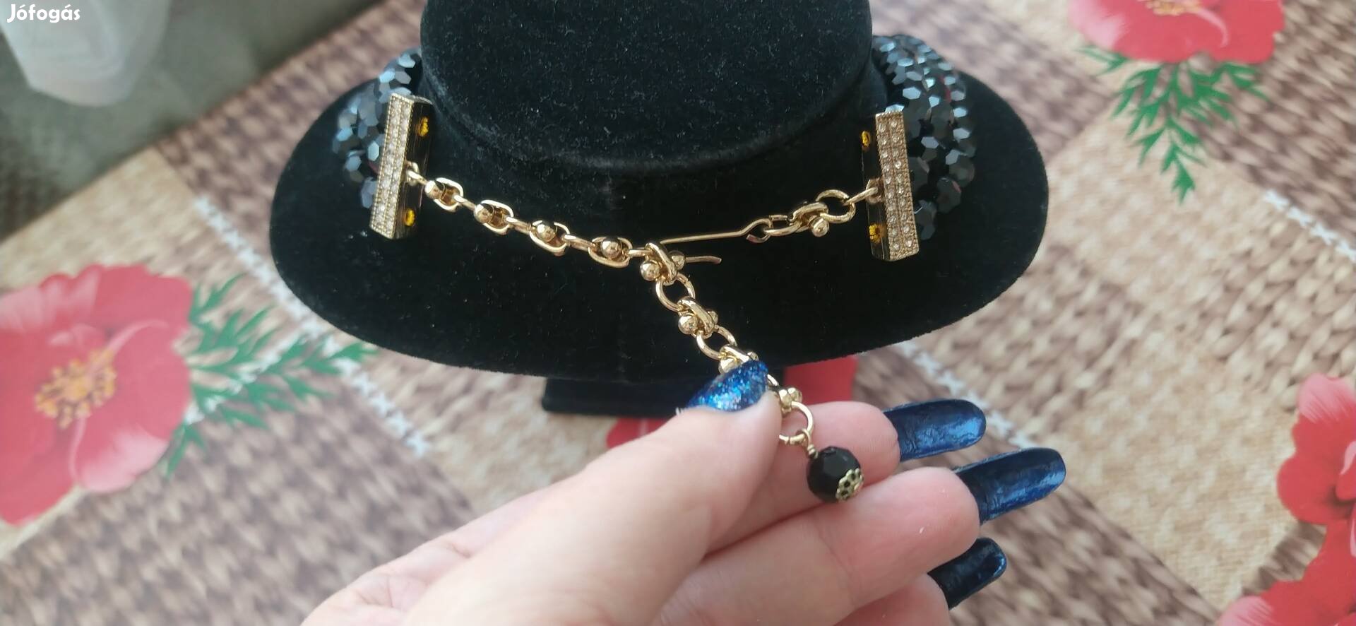 fekete kormorán gyöngyös kristály strassz köves hattyú nyaklánc