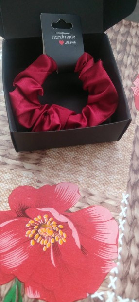 új bordó burgundi vörös szatén alkalmi kicsi scrunchie