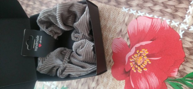 új nagy plüss bársony csíkos szürke alkalmi scrunchie