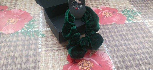 új sötét zöld plüss bársony közepes alkalmi scrunchie