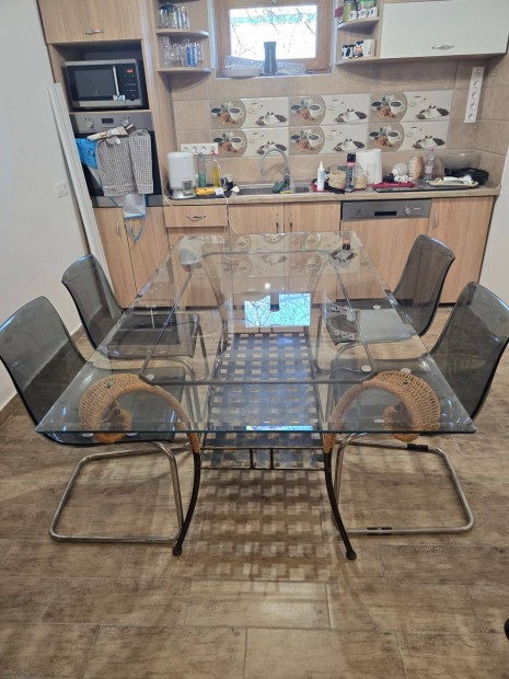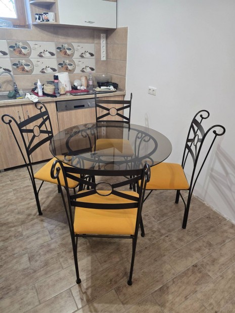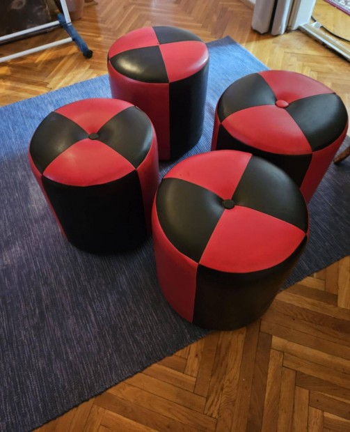 4 darabos, 1970-es évekből származó, pirosfekete puff szett