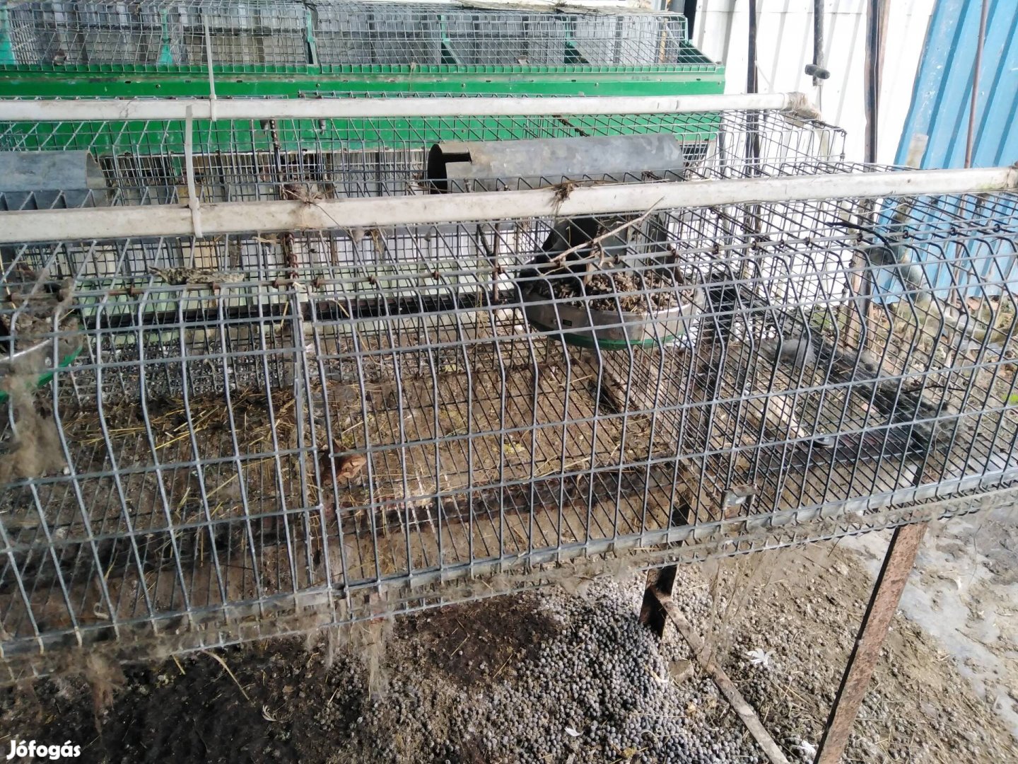 Eladó a képen látható jó állapotú fém nyulketrecek itatoval, etetovel, 12 anya és szaporulat számára,