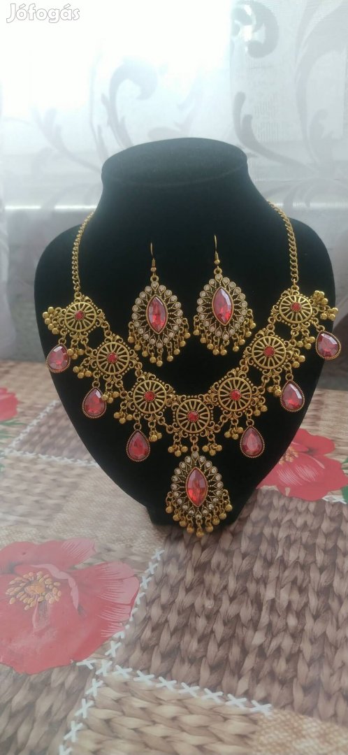 Kihasználatlanság miatt eladó nagy mutatós piros fehér kristály kövekkel díszített indiai ékszer szett.