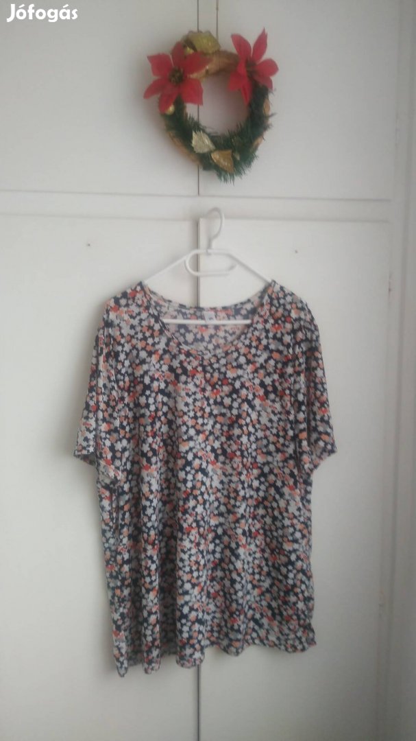 Kihasználatlanság miatt eladó sötétkék színes virág mintás női póló.