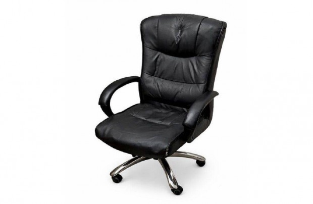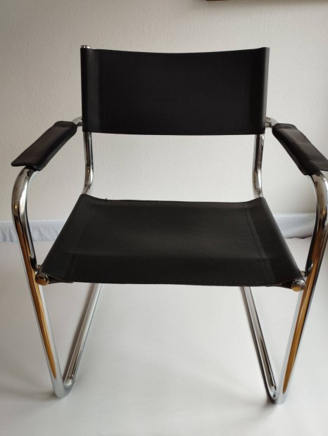 Fekete bőr, króm vázas, karfás szék (bauhaus)