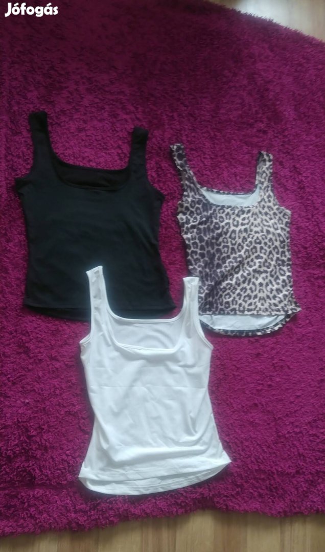 Kihasználatlanság miatt eladó fehér , fekete és leopárd mintás sztreccs felső, top csomag.