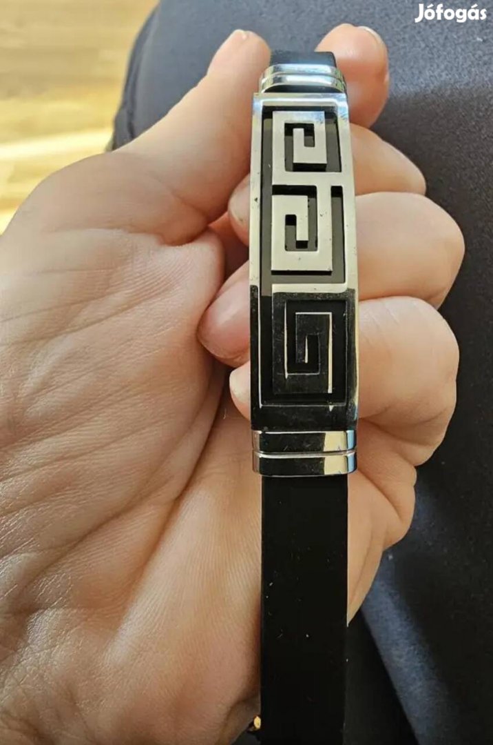 Kihasználatlanság miatt eladó görög mintás nemesacél fekete ezüst színű férfi karkötő.