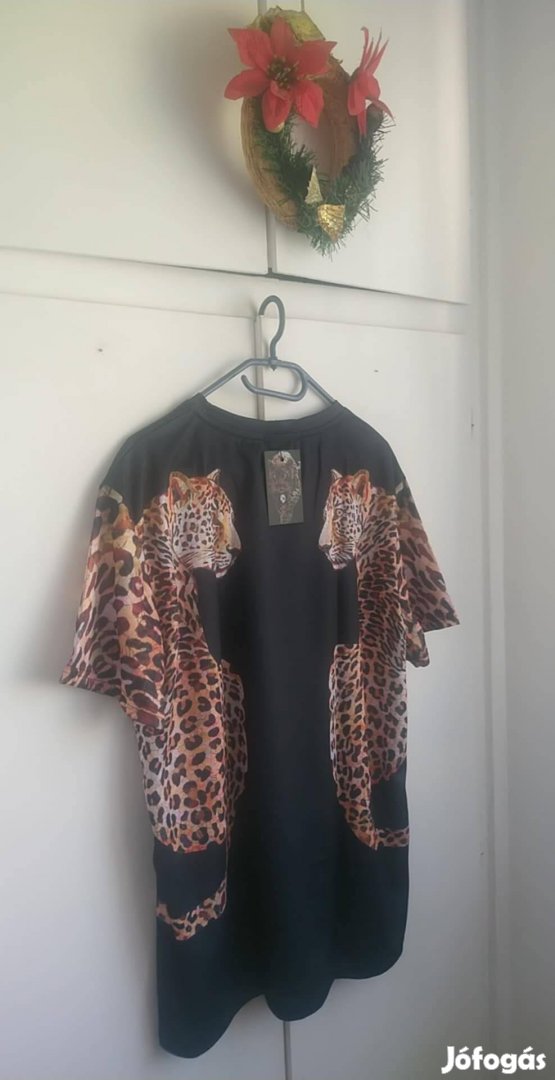 Kihasználatlanság miatt eladó fekete két oldalt leopárd mintás divatos póló.