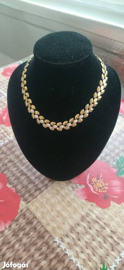 Kihasználatlanság miatt eladó arany színű gyöngyökkel és dombornyomott mintákkal díszített alkalmi chokker nyaklánc.