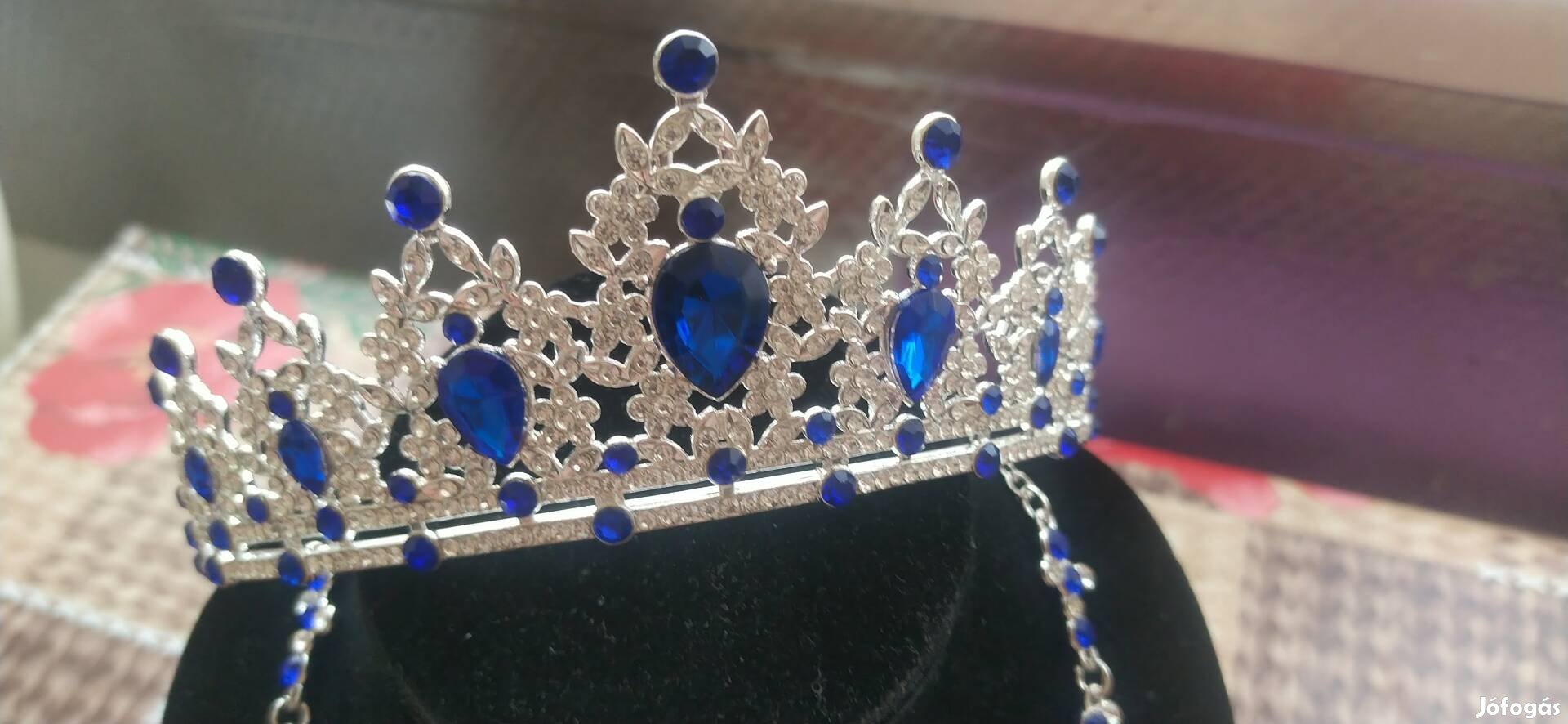 - royal blue/ ezüst színű, kövekkel díszített korona , tiara, fejdísz