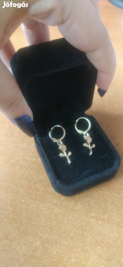 Kihasználatlanság miatt eladó aranyszínű rózsa mintás kis karika fülbevaló.