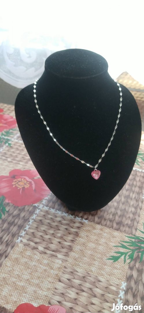 Kihasználatlanság miatt eladó rózsaszín kristály kővel díszített szív mintás medálos nyaklánc.