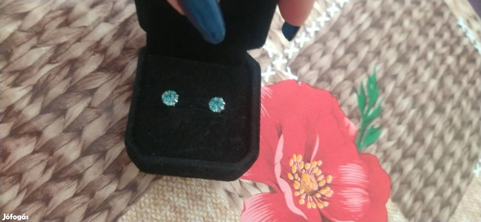 Kihasználatlanság miatt eladó türkiz kék cirkónia köves rozsdamentes acél fülbevaló.