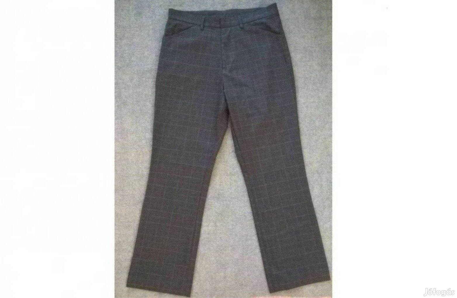 Eladó keveset használt sötét szürke alapon kocka mintás bővebb és egyenes szárú nadrág.