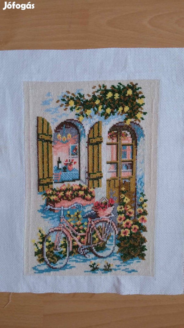 21x30,5 cm keresztszemes biciklis kép virágokkal 3000 Ft