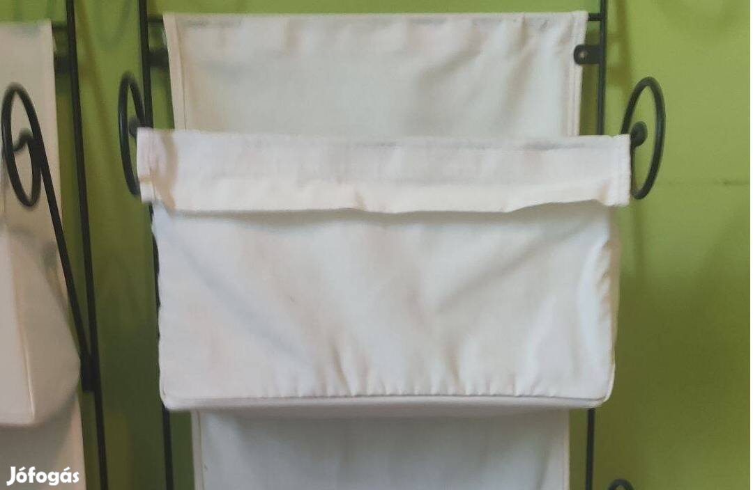 Eladó 2 darab megkímélt állapotú IKEA Allamala fali tároló. Praktikus darab, fekete fém vázzal és fehér textil zsebekkel. Ideális újságok, játékok vagy fürdőszobai kiegészítők rendszerezéséhez.
