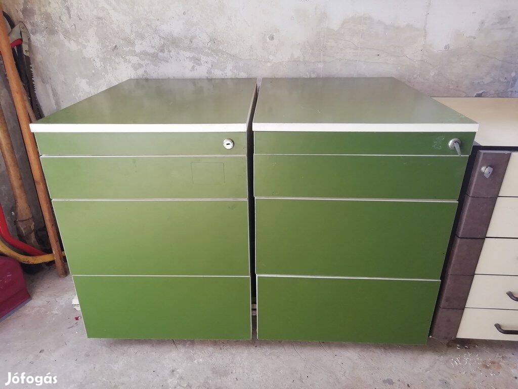 2 db zöld irattároló szekrény, irodai 3 fiókos (egyik zárható, komód)