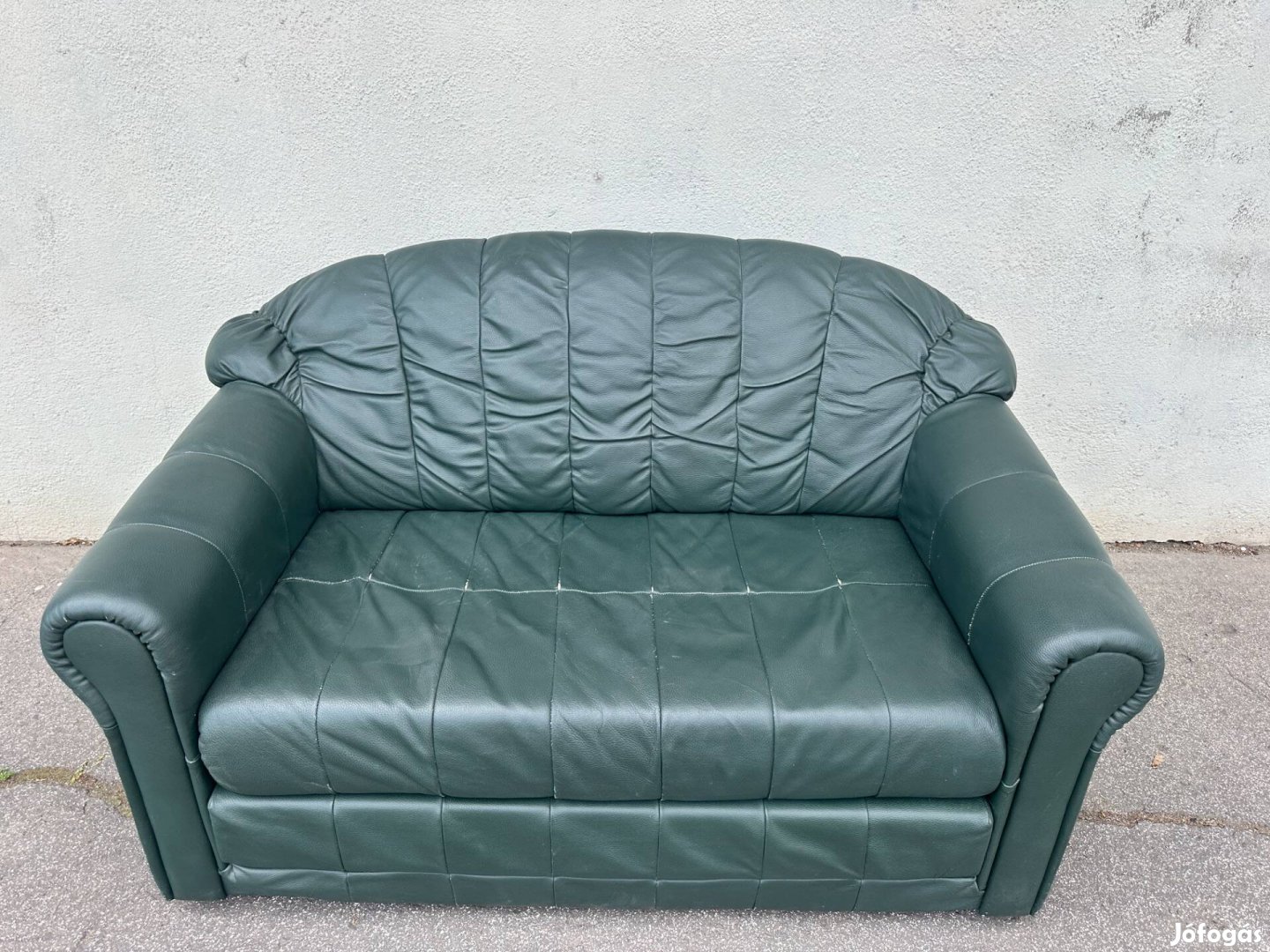 2 személyes, zöld színű, használt, bőr kanapé eladó.