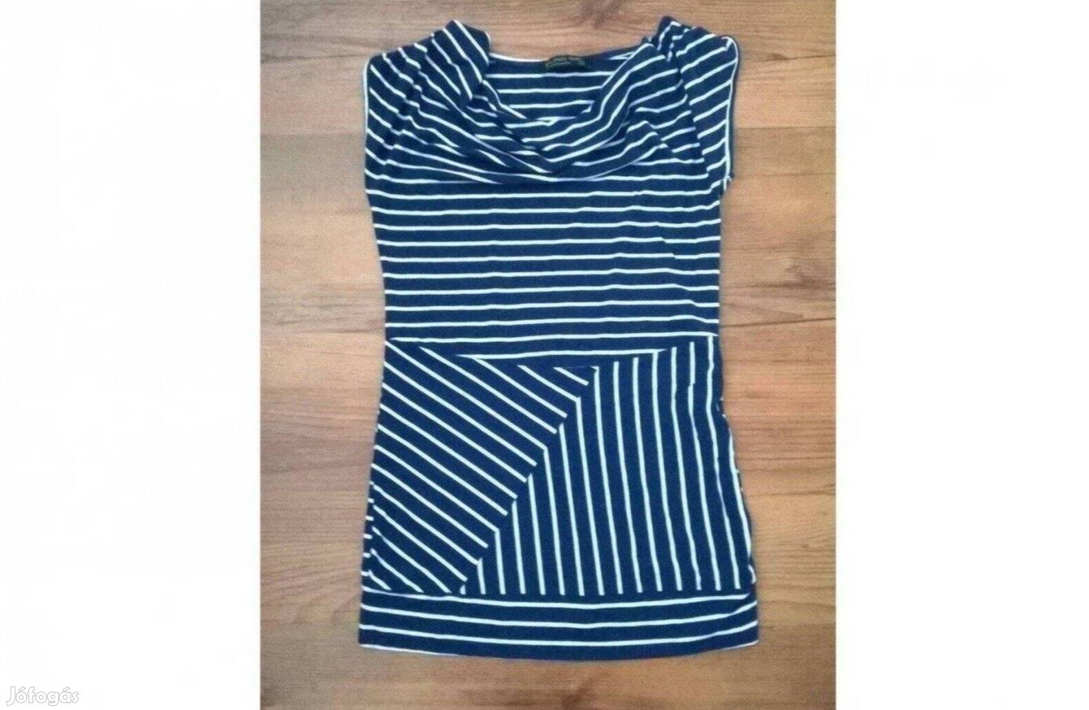 Eladó ez a hibátlan állapotú sötétkék-fehér csíkos nyári ujjatlan felső, rugalmas anyagú.