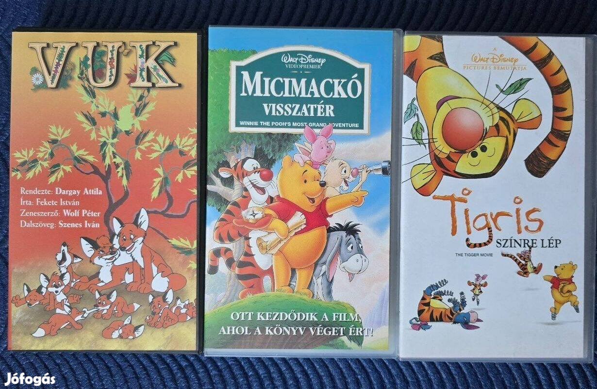 3db Mese VHS/videokazetta, Vuk, Micimackó,Tigris