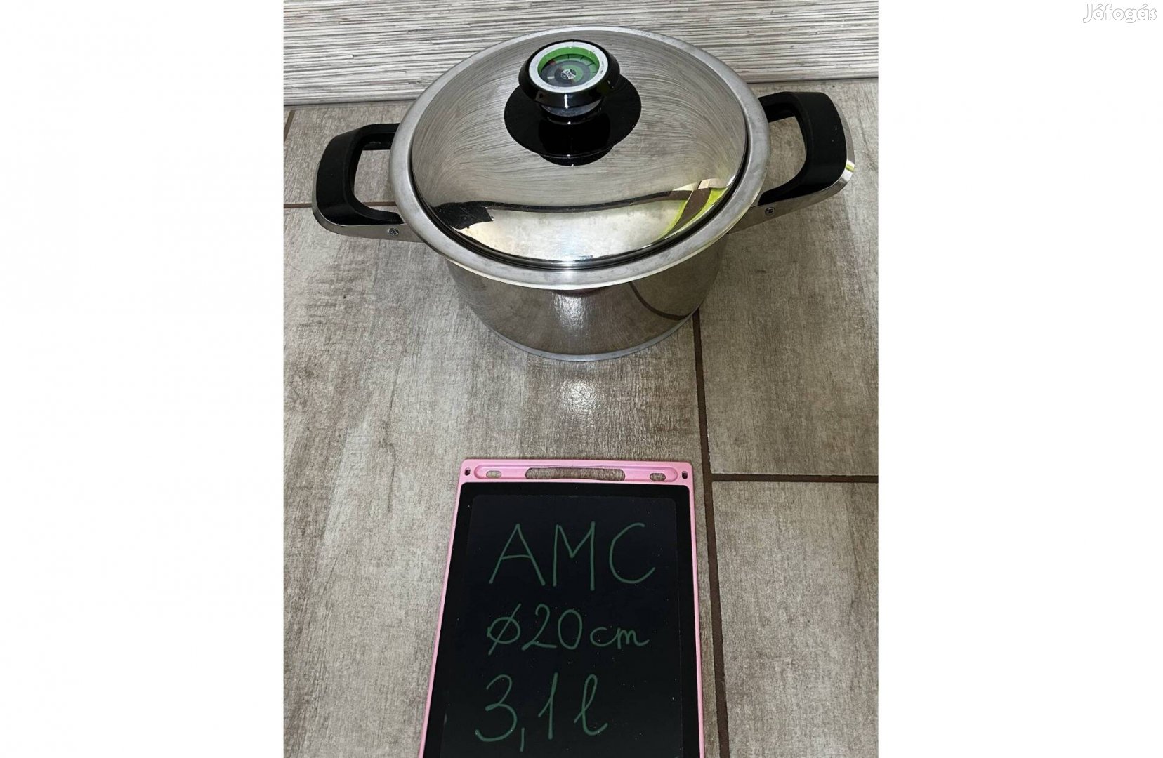 Eladó egy használt AMC 20 cm belső átmérőjű 3,1 literes rozsdamentes edény fedővel.