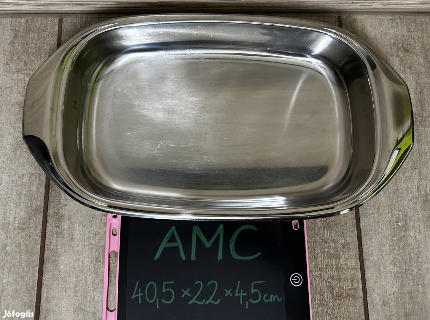 Eladó egy használt, de szép állapotban levő rozsdamentes AMC Lasagnera tepsi. Használható tepsiként / sütőedényként és tálaló /kínáló tálként is.