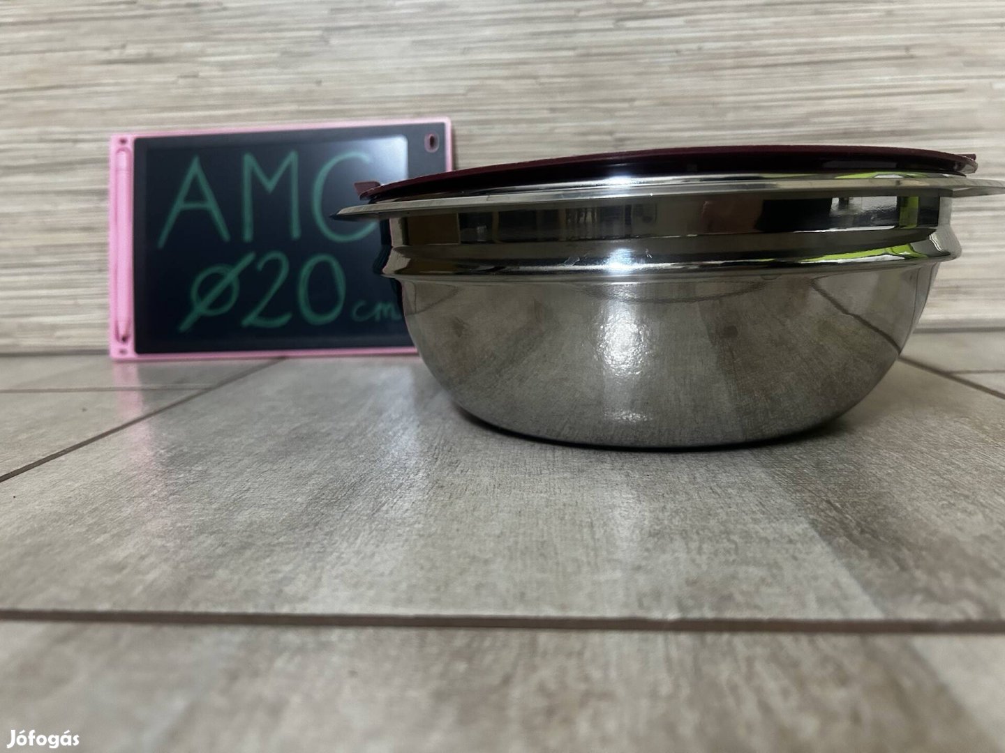 Eladó egy használt, de jó állapotban levő AMC rozsdamentes 20 cm belső átmérőjű kombitál. Tökéletesen illik rá bármely AMC 20 cm-es fedő. A tál aljánál van egy ponton pici benyomódás, A használatát nem befolyásolja. Mosogatógépben mosható.