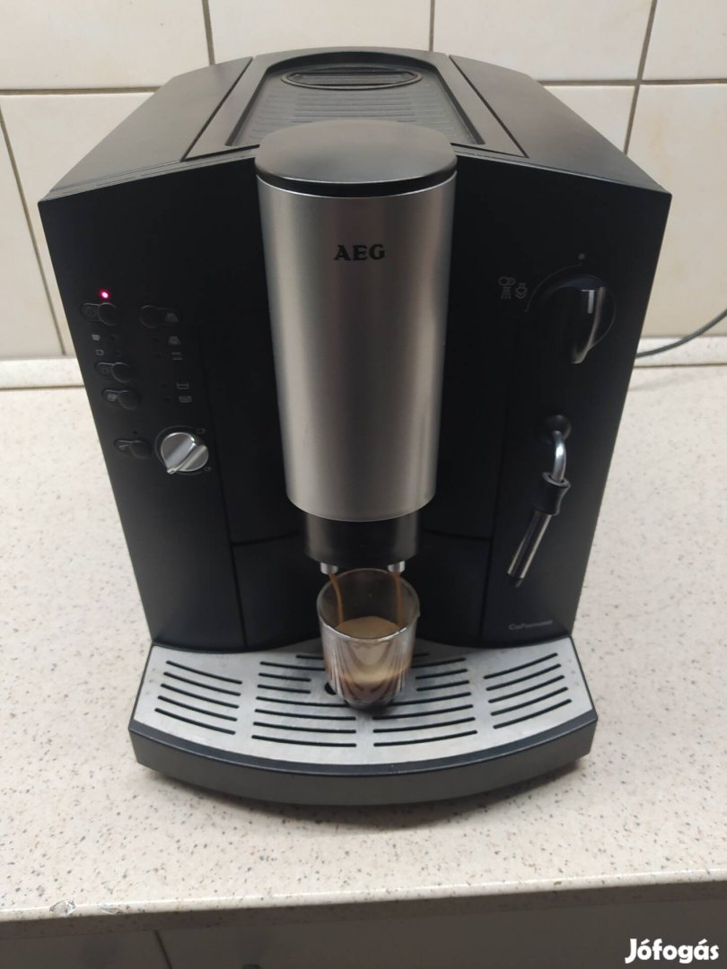 Eladó a képen látható használt automata kávéfőző, kávét le főzik de karbantartást javítást igényelhet.
