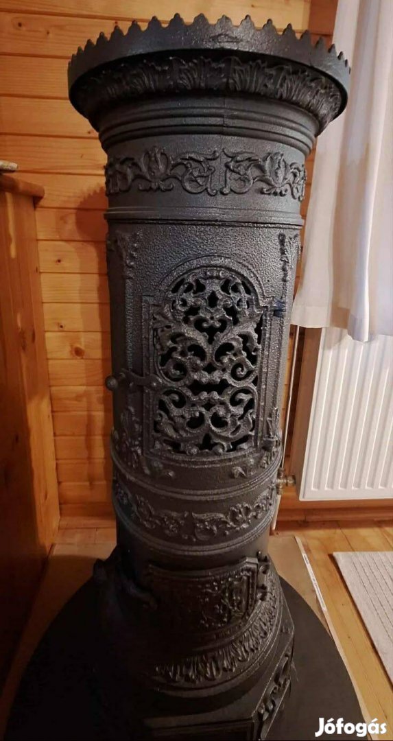 Restaurált, hőálló festékkel, homokfújva, samottozva, új belső lángtörővel, szabályozható. 1890-1915 között készült.