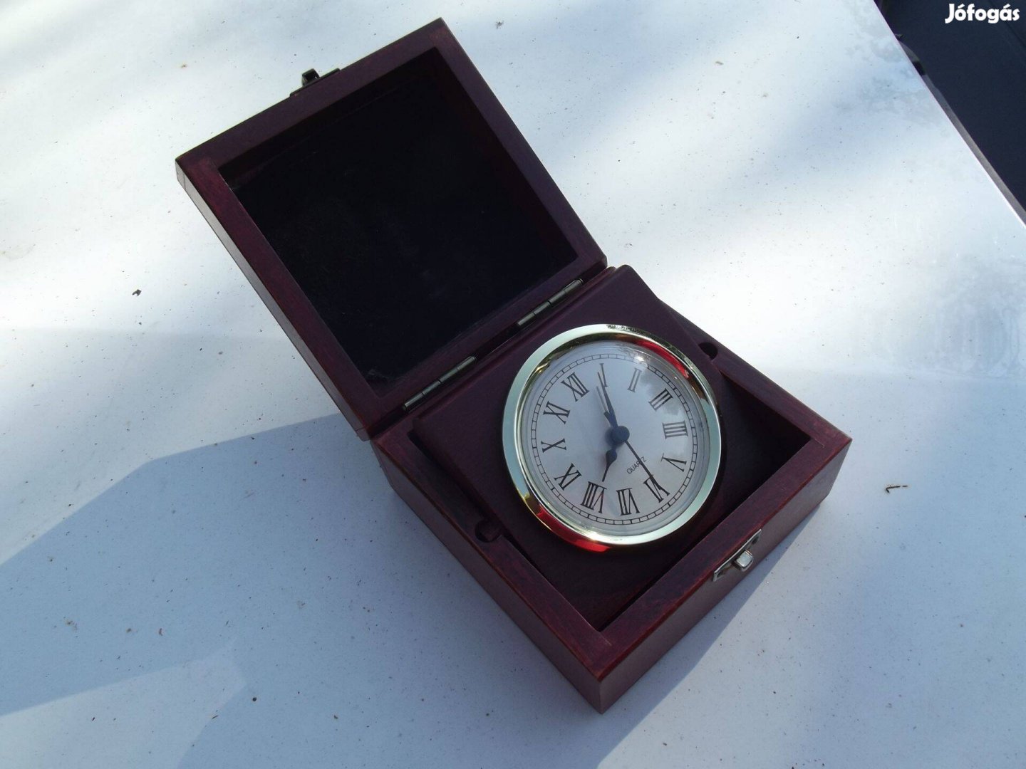 Asztali óra fa dobozban. Quartz szerkezet, tökéletesen működik.