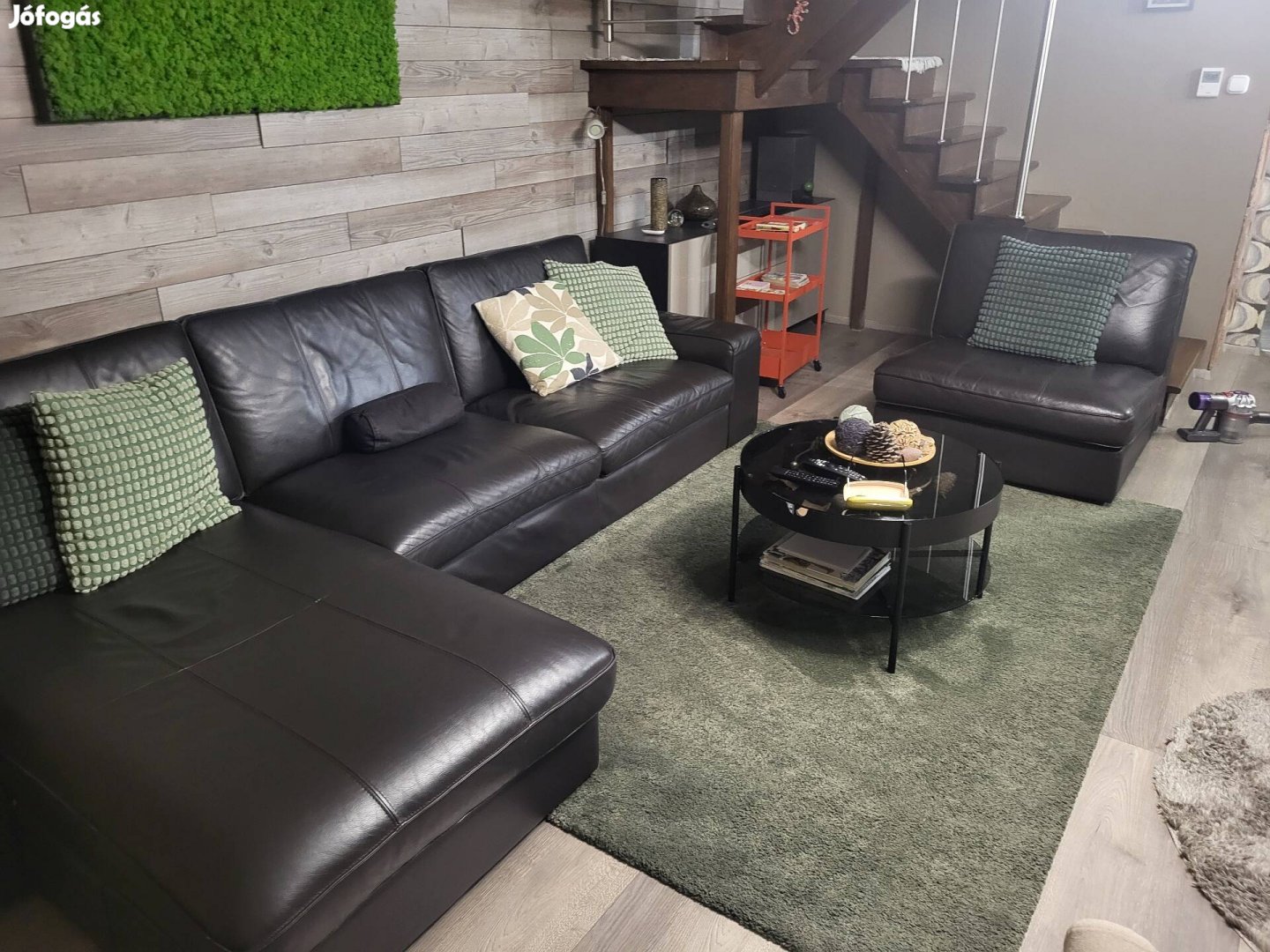 Ikeában vásárolt Kivik fantázianevű bőr ülőgarnitúra fekvőfoteles + fotellel olcsón eladó.