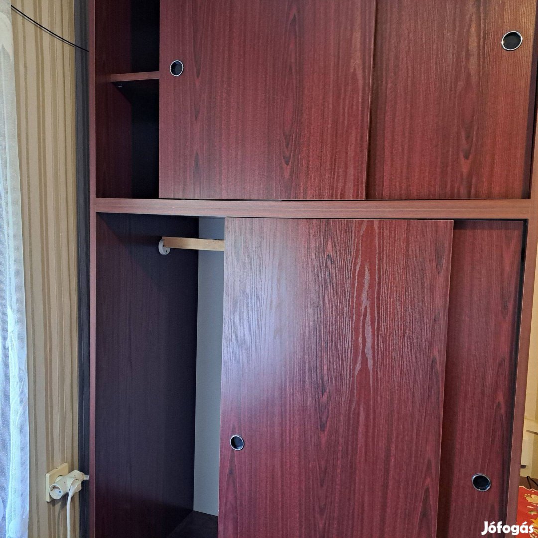 Machagóni színű,akasztós szekrény,alul két fiókkal.