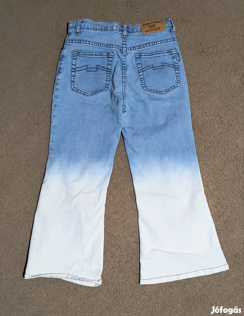 Keveset használt,2 színű farmer bokanadrág,vörös és fekete festékfröccsenéses mintával. Minden méretét fotóztam,szűk fazon,szélesedő szárral. Teljesen hibátlan állapotú