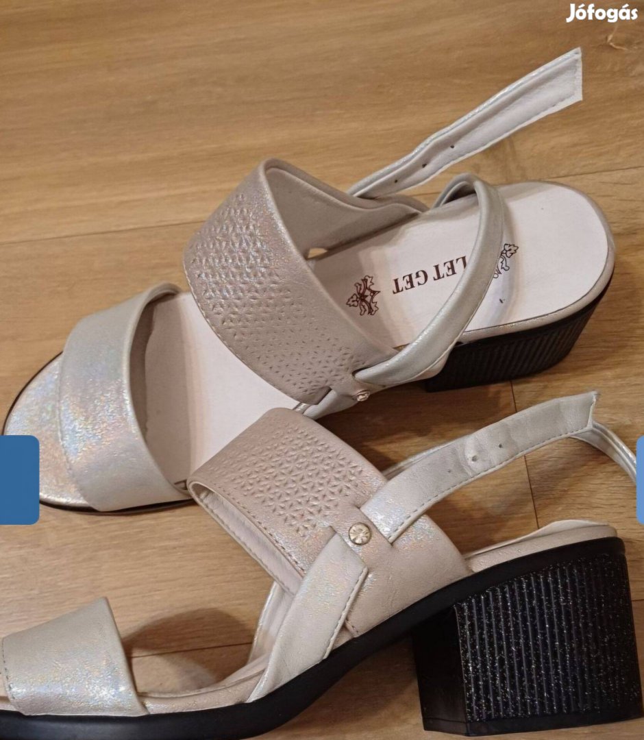 Csillogós ezüst női magassarkú szandál eladó. Mérete 39