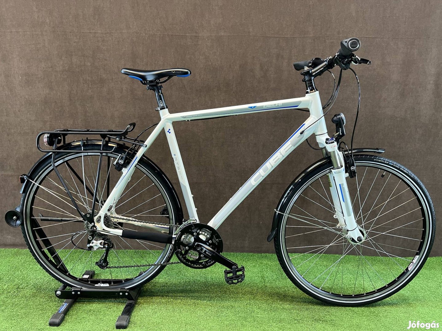 Magura olajfékes, Shimano Deore XT, LX 3x9 sebességes rendszer, agydinamós ledes világítás és fixálható teleszkóp.