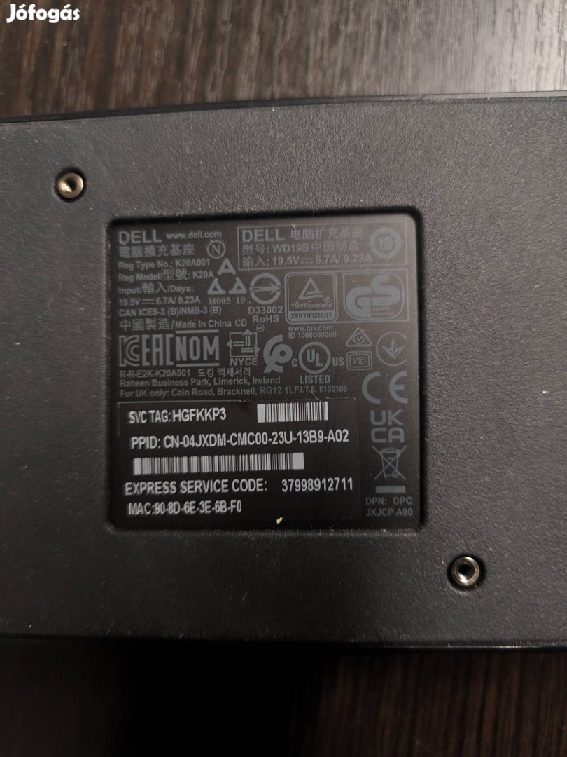 Eladó egy Dell K20A WD19S Dokkoló Notebookokhoz számitógepekhez. Szinte nem is használtam. Doboza papírjai nincsenek meg.