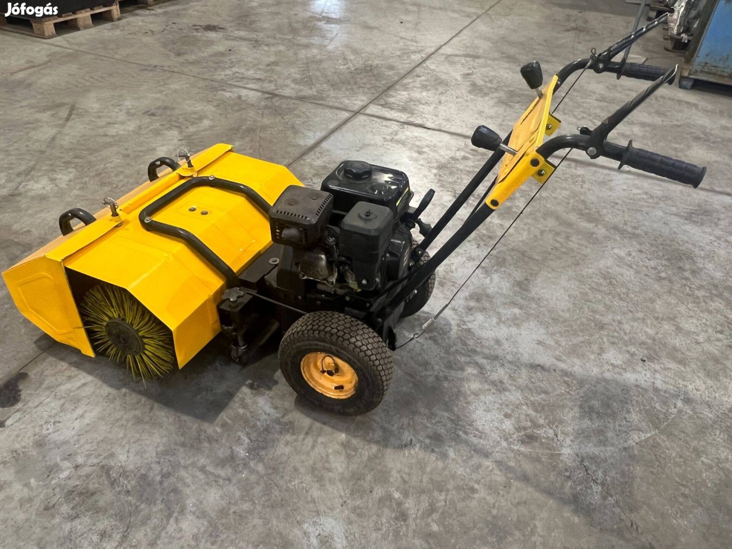 Eladó jó állapotú, erős kivitelű benzines seprőgép, telephelyek, parkolók, raktárak, járdák és ipari területek tisztítására.