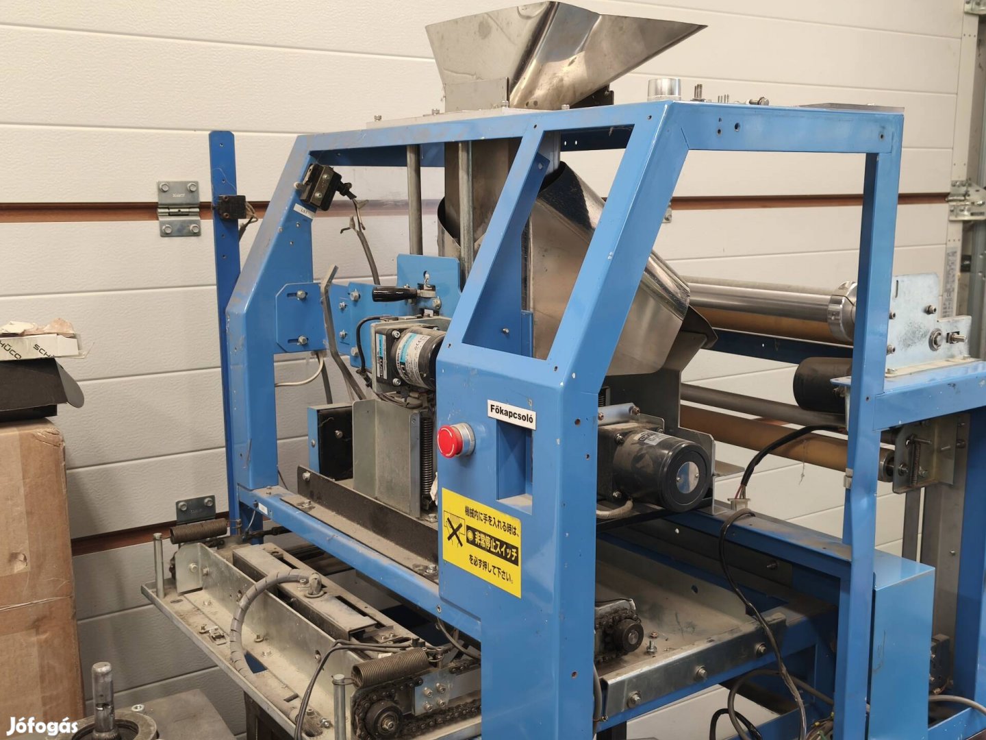 Eladó zacskós csomagológép mechanikus szerkezete. Részegységek a gépen vagy ládában. Meghajtó villanymotorok megvannak. Nincs hozzá elektromos vezérlés. 1-2db érzékelő még a helyén van.
