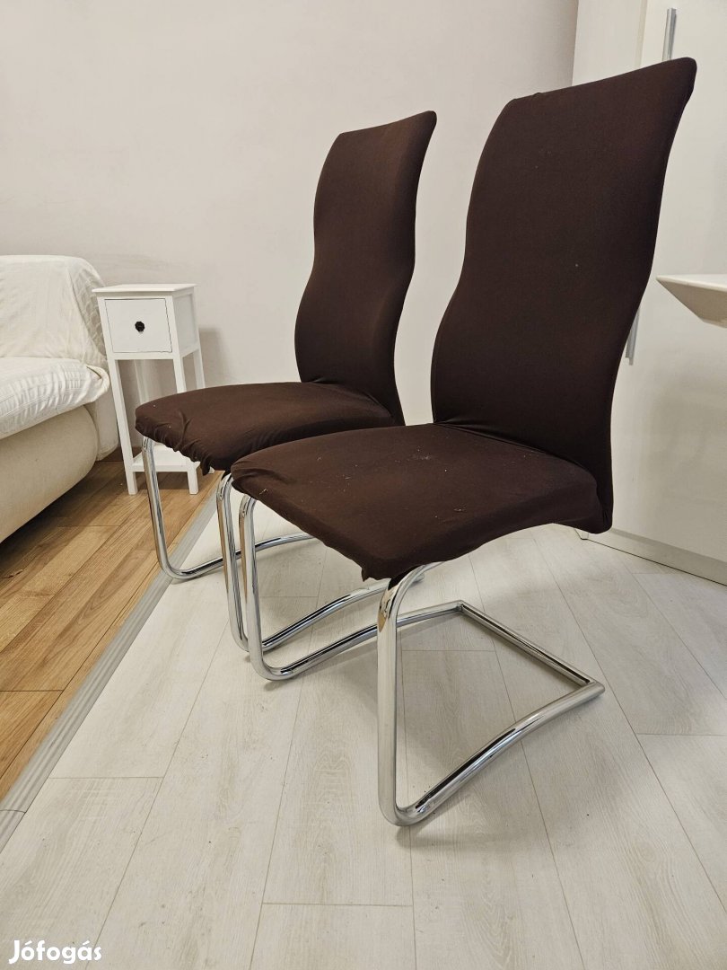 Eladók a képen látható fémvázas székek (2db). A textilbőr borításuk erősen pereg ezért a plusz huzat, ezen kívül tökéletes állapotban vannak.