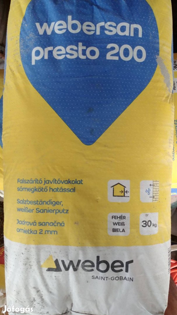 Eladó 4 zsák weber pesto 200 szárítóvakolat. Száraz helyen tárolt.