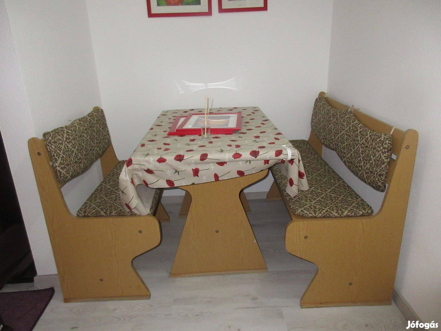 A képen látható étkező garnitúra eladó. Az asztal 100cmX60 cm-es. Darabja 1.000,-Ft.